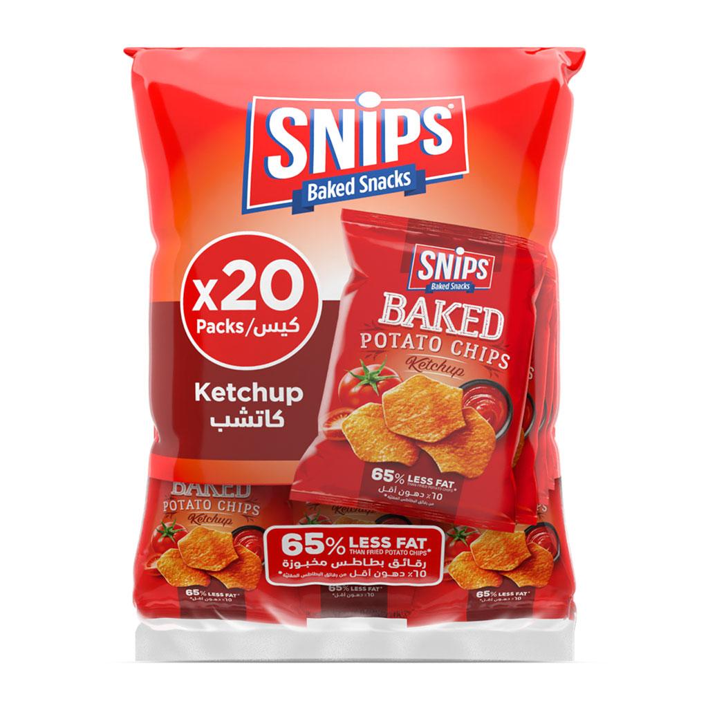 Snips Baked Potato Chips - Ketchup deliver the perfect blend of crispy texture and tangy ketchup flavor. These oven-baked chips are a delicious and healthier snack option for any time of day!