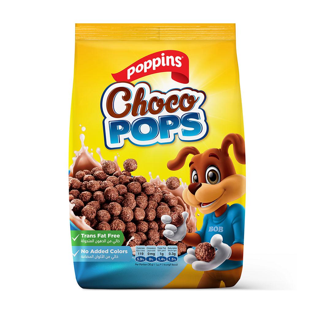 Chocolate Pops to start your child's day with a blast of flavor! Poppins Choco Pops are crunchy toasted rice and maize balls flavored with chocolate. They're made with real ingredients, fiber and vitamins and contain no artifical colors or trans-fat. The perfect breakfast packed with energy and fun.