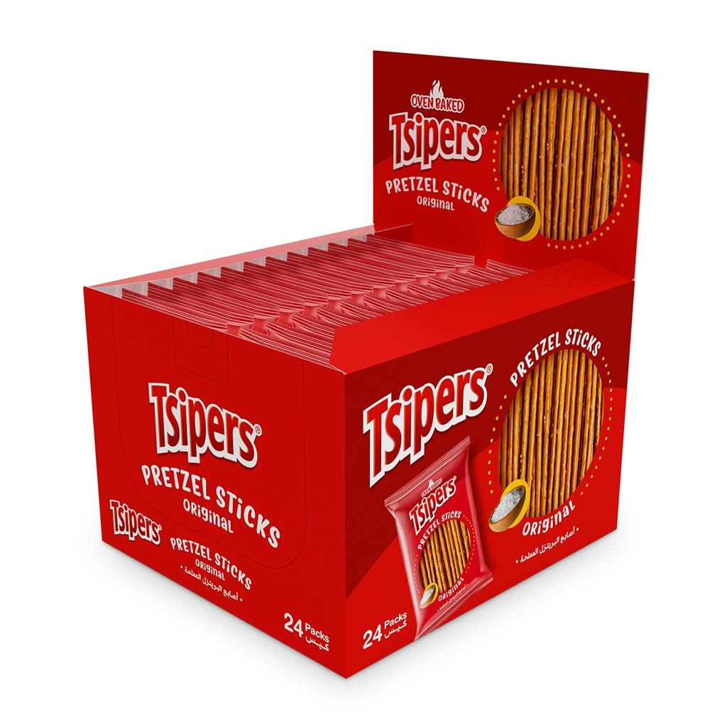 Enjoy Tsipers Original Pretzel Sticks! Crispy, oven-baked, and perfectly salted. These classic pretzel sticks are ideal for dipping or a satisfying savory snack.
